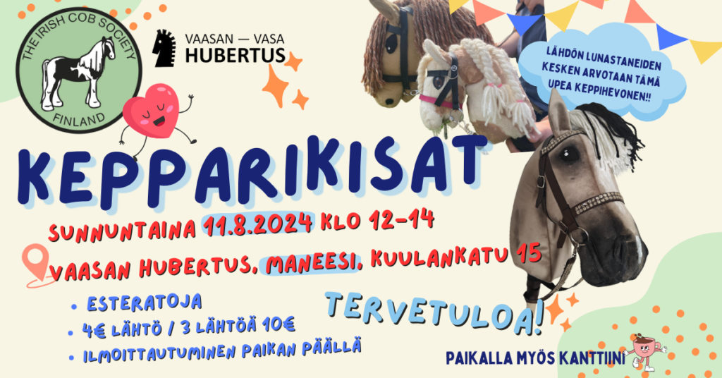 Paikalla on myös lainaheppoja, jos oma keppari on vielä kesälaitumella tai hommaamatta. Osallistua voi kaikenikäiset ja -tasoiset ratsastajat ja pienimmät voivat suorittaa radan vaikka vanhempien kanssa.